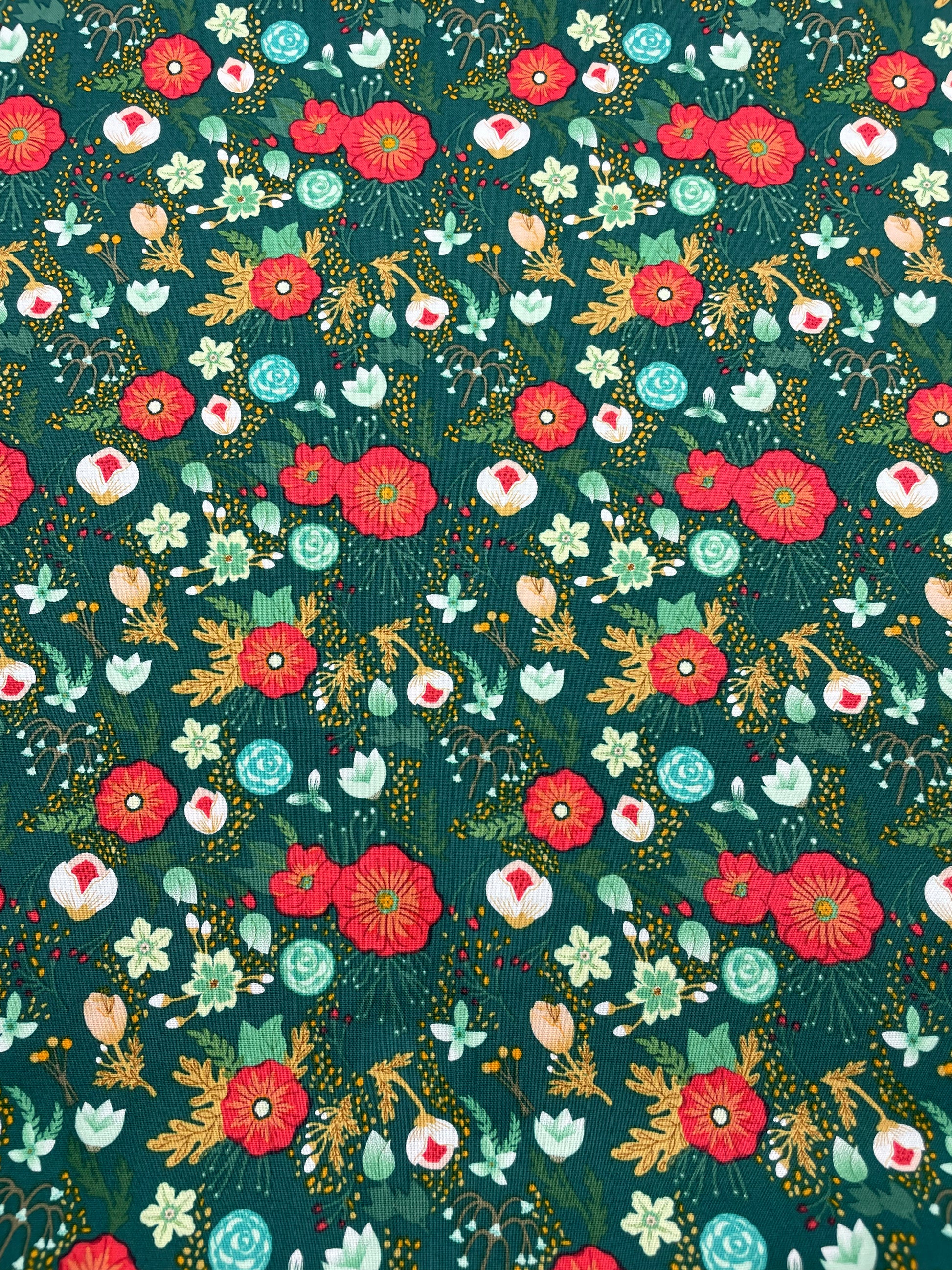 Gorgeous teal and poppy floral, perfect for winter holidays or year round!
